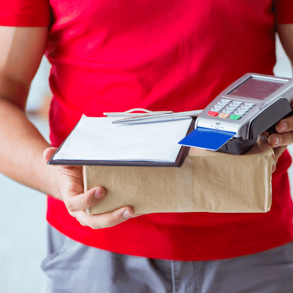 Așteptați curierul pentru a ridica și plăti coletul.